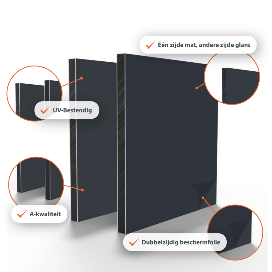 - Schwarzer PE-Kern, Aluminium-Decklagen 0,3 mm stark