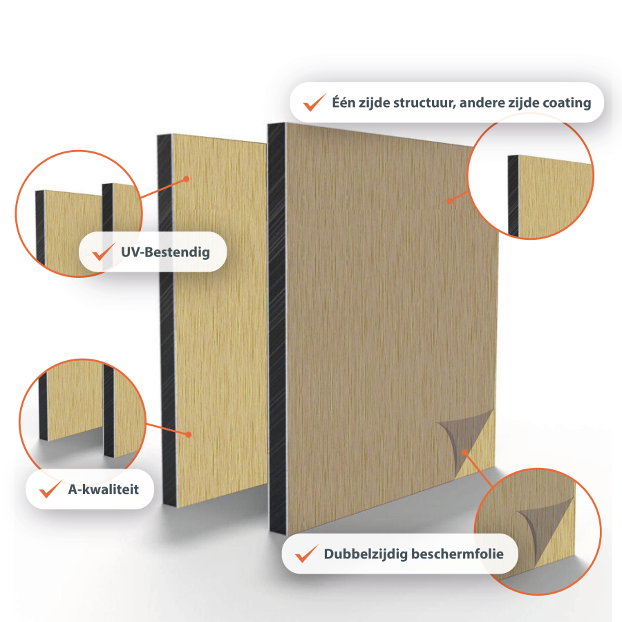 - Sandwichaufbau: 2 Aluminiumdeckschichten mit PE-Kern