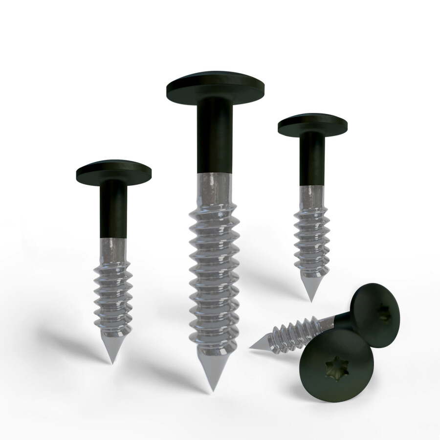 HPL-Fassadenplattenschrauben, speziell für die Montage von Trespa- und HPL-Platten. Die Schrauben bestehen aus Edelstahl (A4 AISI 316 / EN 1.4401) und sind mit einer speziellen Beschichtung versehen. Dadurch sind sie korrosionsbeständig, UV-beständig und kratzfest. Der Schraubenkopf ist farblich auf die Platte abgestimmt und hat einen Durchmesser von 12 Millimetern.