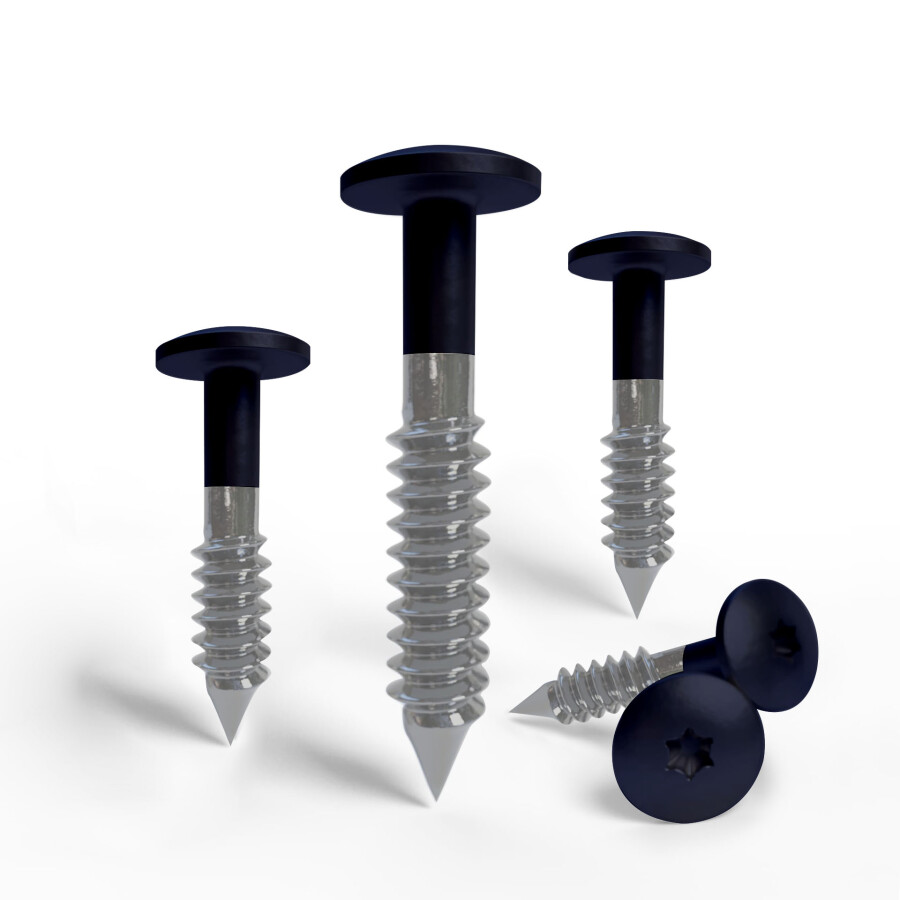 Edelstahl-Torx-Schraube – Stahlblau RAL 5011, 4,8x25 mm, Schachtel à 100 Stück inkl. T20-Bit