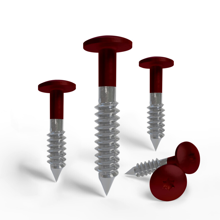 Edelstahl-Torx-Schraube – Weinrot RAL 3005, 4,8x25 mm, Schachtel à 100 Stück inkl. T20-Bit