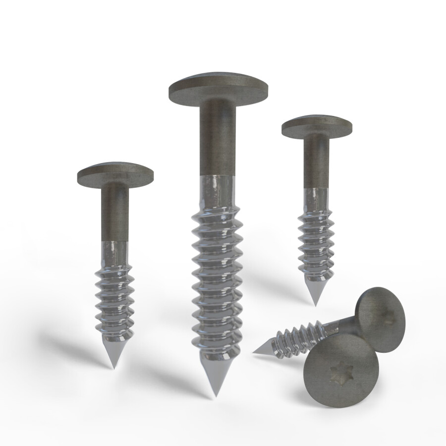 HPL-Fassadenplattenschrauben, speziell für die Montage von Trespa- und HPL-Platten. Die Schrauben bestehen aus Edelstahl (A4 AISI 316 / EN 1.4401) und sind mit einer speziellen Beschichtung versehen. Dadurch sind sie korrosionsbeständig, UV-beständig und kratzfest. Der Schraubenkopf ist farblich auf die Platte abgestimmt und hat einen Durchmesser von 12 Millimetern.
