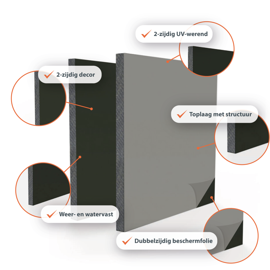 HPL-Bauplatten für Außenanwendungen sind robust, witterungsbeständig und farbecht. Erhältlich in 38 RAL-Farben und mit beidseitigem Dekor, ideal für Fassadenverkleidungen, Balkonverkleidungen und technische Außenkonstruktionen.