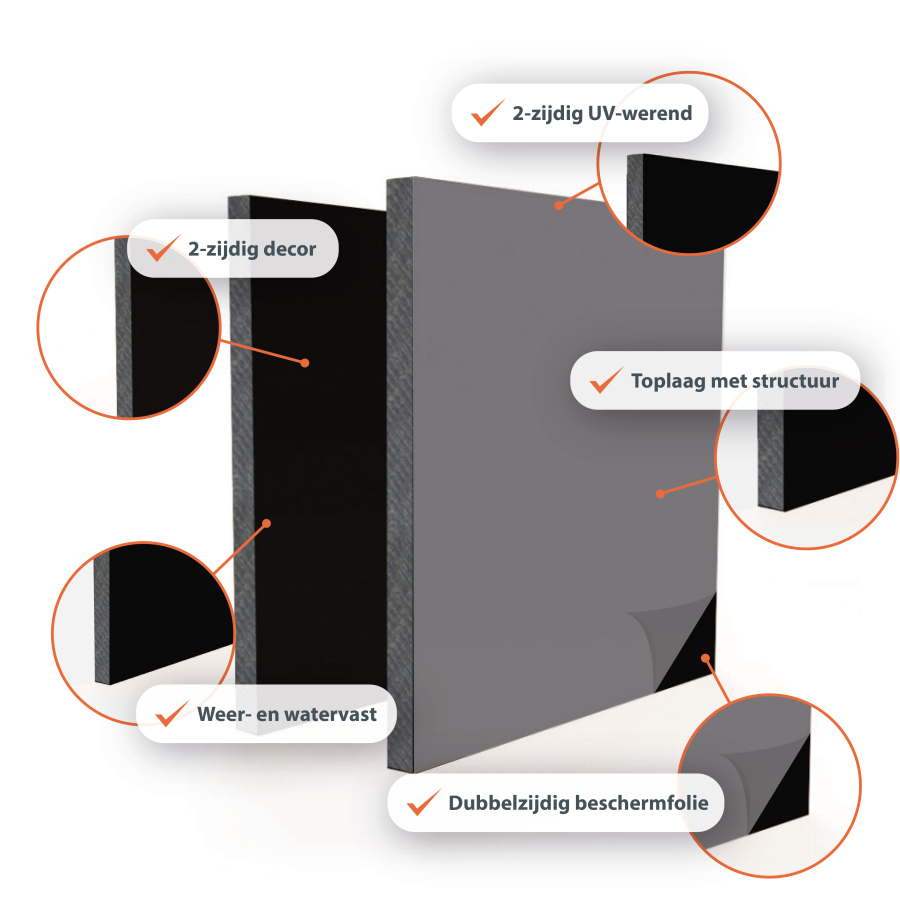 HPL-Bauplatten für Außenanwendungen sind robust, witterungsbeständig und farbecht. Erhältlich in 38 RAL-Farben und mit beidseitigem Dekor, ideal für Fassadenverkleidungen, Balkonverkleidungen und technische Außenkonstruktionen.