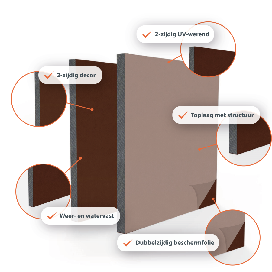 HPL Muster Außenbereich Sepiabraun RAL 8014 80×50