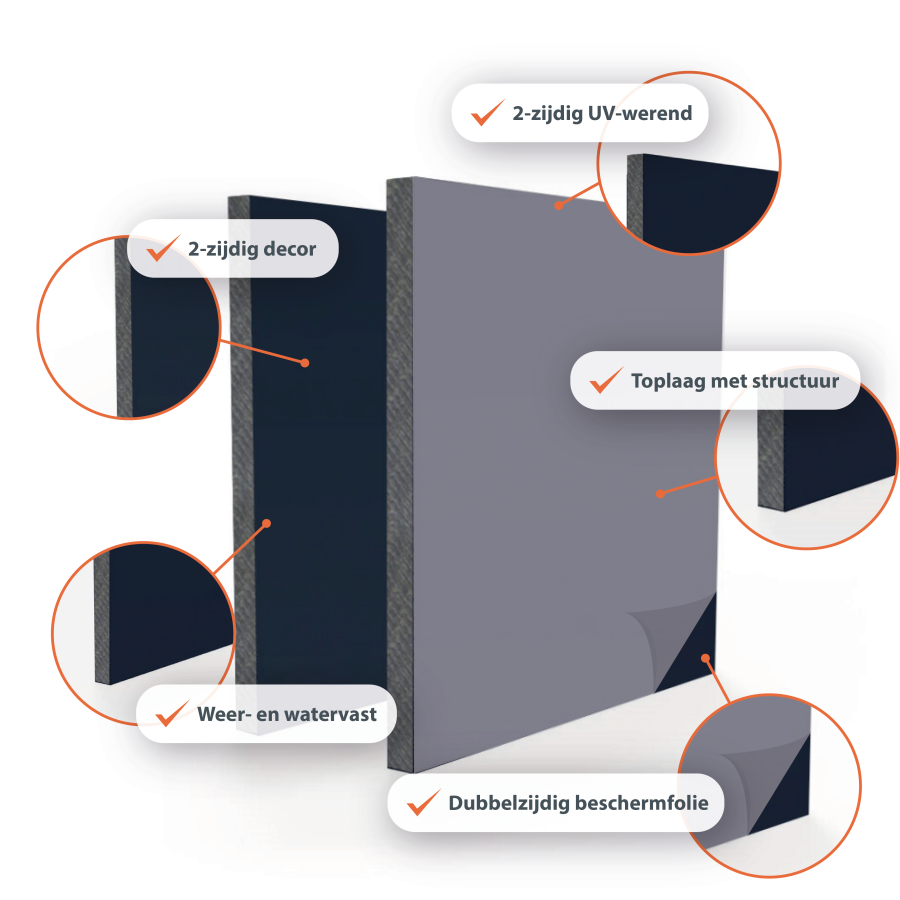 HPL-Bauplatten für Außenanwendungen sind robust, witterungsbeständig und farbecht. Erhältlich in 38 RAL-Farben und mit beidseitigem Dekor, ideal für Fassadenverkleidungen, Balkonverkleidungen und technische Außenkonstruktionen.