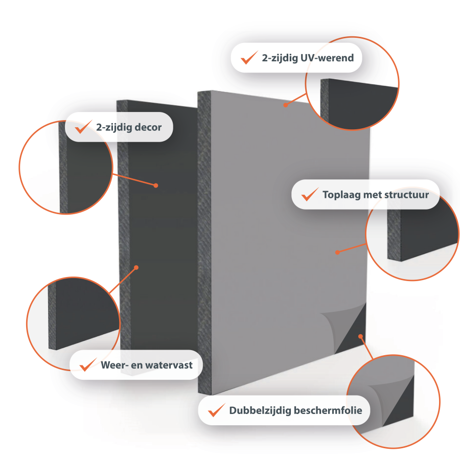 HPL-Bauplatten für Außenanwendungen sind robust, witterungsbeständig und farbecht. Erhältlich in 38 RAL-Farben und mit beidseitigem Dekor, ideal für Fassadenverkleidungen, Balkonverkleidungen und technische Außenkonstruktionen.