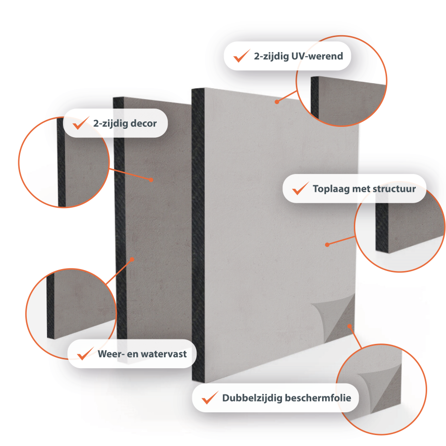 HPL-Bauplatten für Außenanwendungen sind robust, witterungsbeständig und farbecht. Erhältlich in 38 RAL-Farben und mit beidseitigem Dekor, ideal für Fassadenverkleidungen, Balkonverkleidungen und technische Außenkonstruktionen.