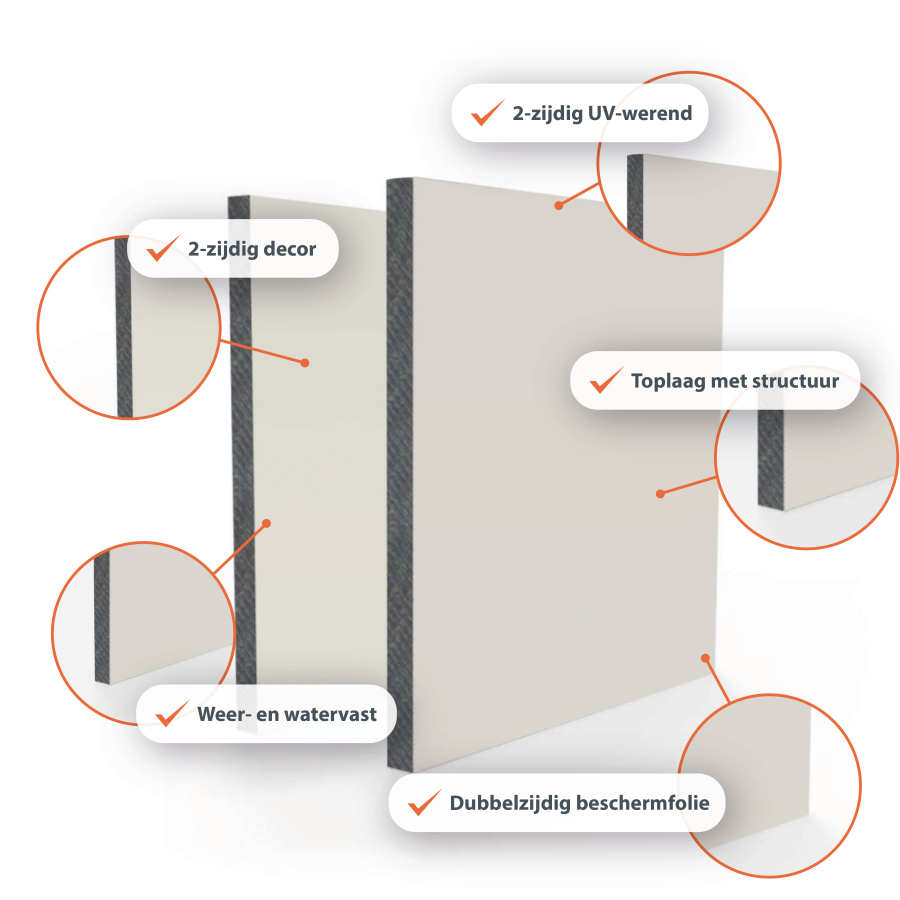 HPL-Bauplatten für Außenanwendungen sind robust, witterungsbeständig und farbecht. Erhältlich in 38 RAL-Farben und mit beidseitigem Dekor, ideal für Fassadenverkleidungen, Balkonverkleidungen und technische Außenkonstruktionen.