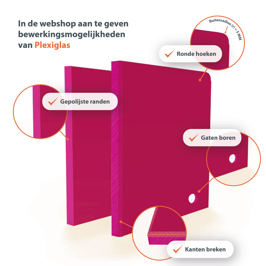 - Thermisch formbar sowie hervorragend zu polieren, fräsen, bohren und verkleben