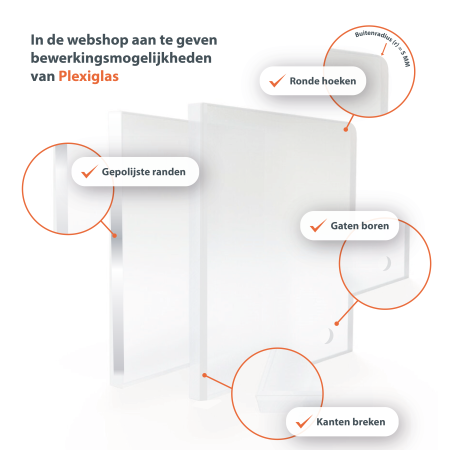 Plexiglas lässt sich leicht verarbeiten, Sägen, Bohren, Fräsen, Biegen und Polieren sind problemlos möglich. Dabei ist jedoch zwischen den beiden Varianten zu unterscheiden: