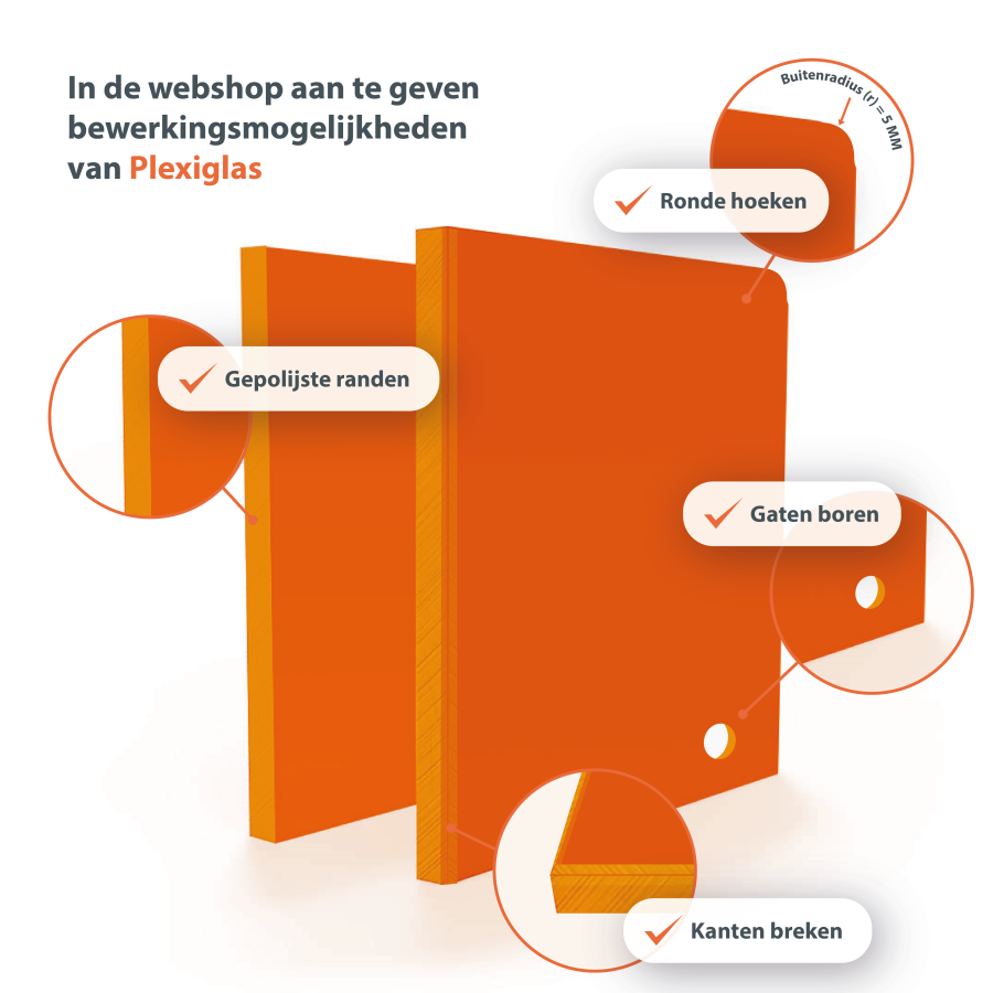 Gegossenes Plexiglas lässt sich hervorragend zerspanen, verkleben, gravieren und thermisch verformen. Im Vergleich zu extrudiertem Plexiglas (XT) weist es deutlich weniger innere Spannungen auf, wodurch es bei der Bearbeitung weniger schnell reißt. Für beste Ergebnisse empfiehlt sich der Einsatz von scharfen Werkzeugen und eine Bearbeitung ohne übermäßige Erwärmung beim Sägen oder Fräsen.