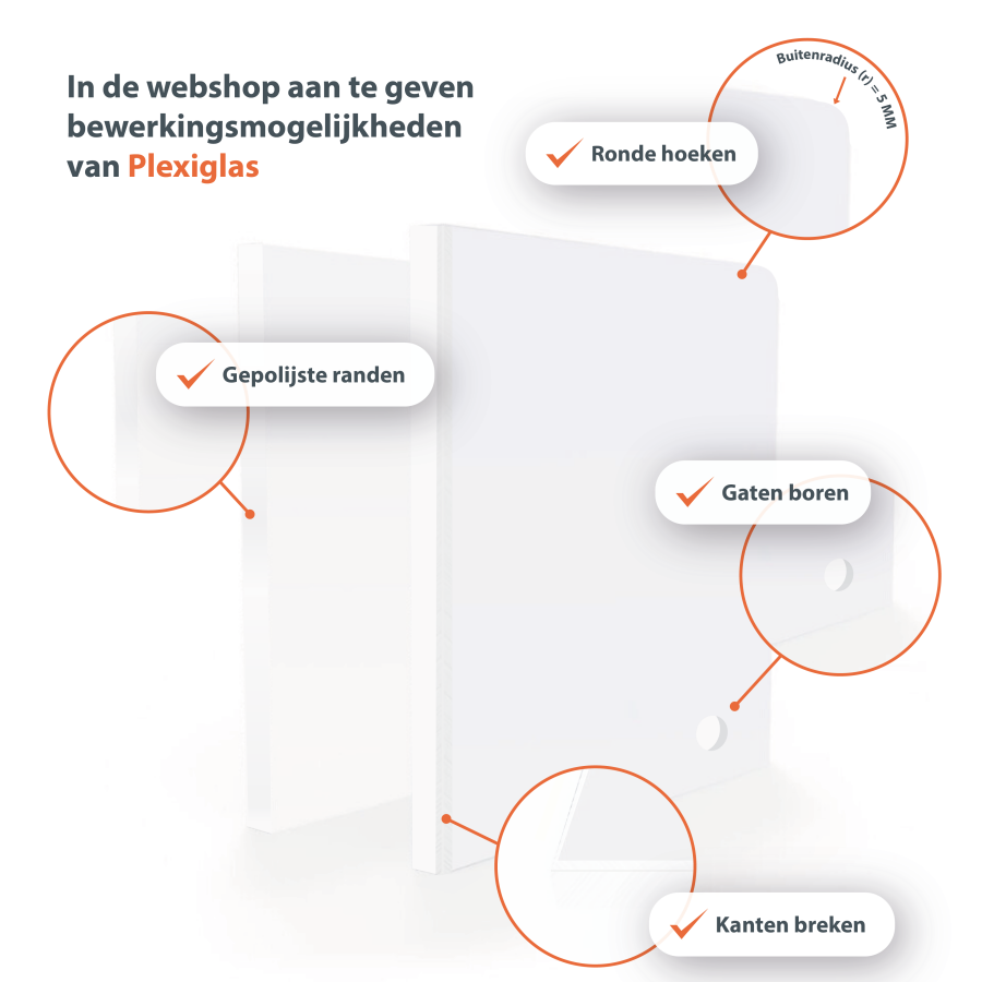 Gegossenes Plexiglas lässt sich hervorragend zerspanen, verkleben, gravieren und thermisch verformen. Im Vergleich zu extrudiertem Plexiglas (XT) weist es weniger innere Spannungen auf, wodurch das Risiko von Rissen bei der Bearbeitung deutlich geringer ist.