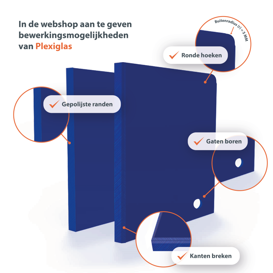 Gegossenes Plexiglas lässt sich hervorragend zerspanen, verkleben, gravieren und thermisch verformen. Im Vergleich zu extrudiertem Plexiglas (XT) weist es deutlich weniger innere Spannungen auf, wodurch es bei der Bearbeitung weniger schnell reißt. Für beste Ergebnisse empfiehlt sich der Einsatz von scharfen Werkzeugen und eine Bearbeitung ohne übermäßige Erwärmung beim Sägen oder Fräsen.