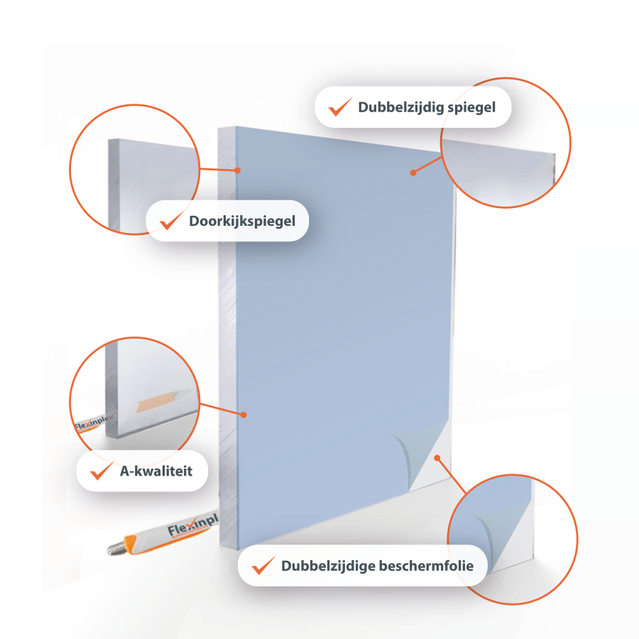 Acrylglas (Plexiglas®) Spiegel ist die leichte und bruchsichere Alternative zu Glas. Bis zu 25-mal schlagfester und nur halb so schwer wie Glas. Perfekt geeignet für Anwendungen, bei denen Gewicht oder Sicherheit eine Rolle spielen, zum Beispiel in Innenräumen oder für dekorative Projekte.