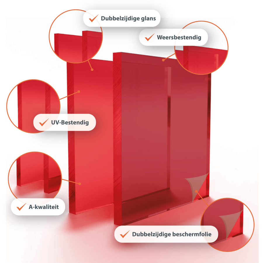 PLEXIGLAS® Platte transparent Rot 1039 600×1200×8 MM