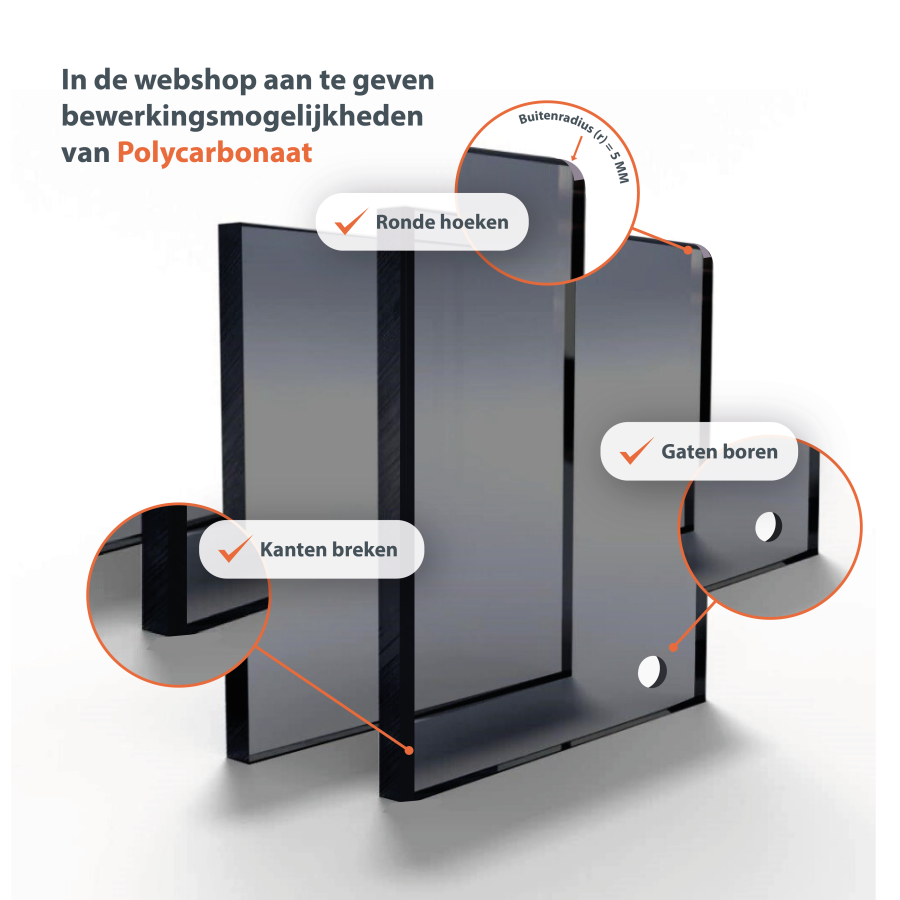 Polycarbonatplatten sind extrem schlagfest, bis zu 250-mal stärker als Glas, und nahezu unzerbrechlich. Sie bieten eine hohe Lichtdurchlässigkeit, lassen sich leicht bearbeiten (bohren, sägen, fräsen) und sind ideal geeignet für Maschinenschutzverkleidungen, Verglasungen und Überdachungen.