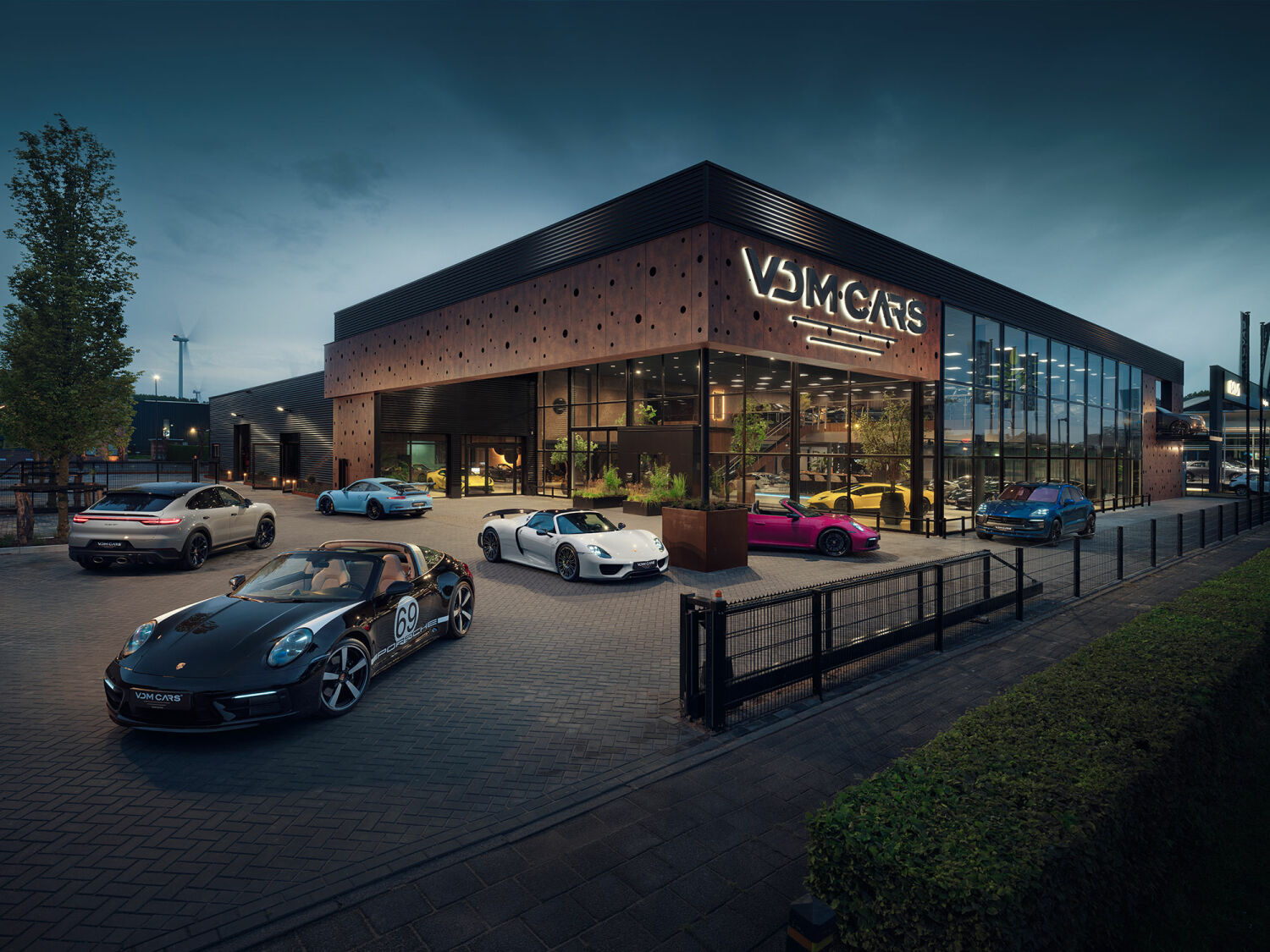 Das Unternehmen verfügt über einen Showroom von beeindruckenden 3.500 m², in dem eine exklusive Sammlung hochwertiger Fahrzeuge präsentiert wird. Und ein solches Gebäude verdient selbstverständlich ein markantes, kraftvolles Erscheinungsbild.