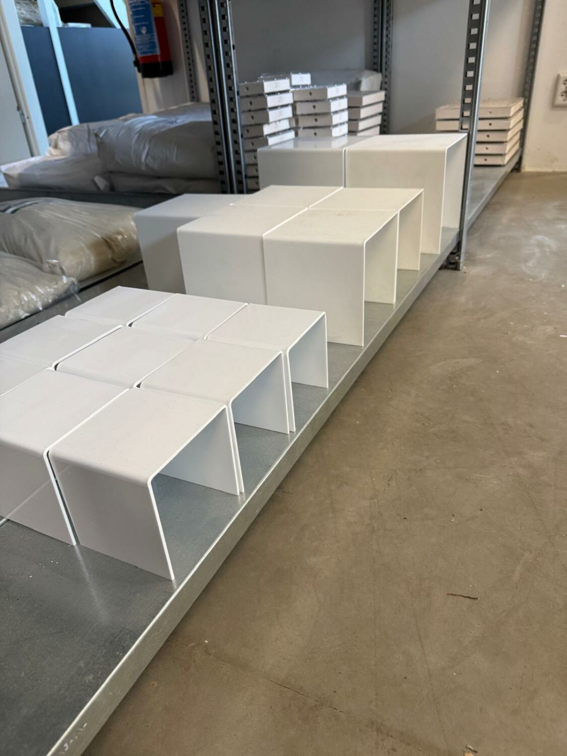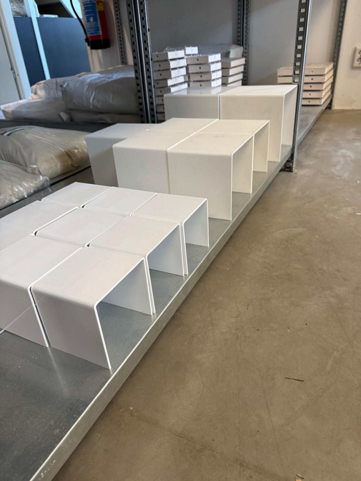 Nach der Lieferung beginnt die eigentliche Handwerkskunst. Mit Fräsmaschinen, Biegegeräten und viel Know-how verwandelt Ant-Blox die Platten in Displays, Halterungen und Sockel. Jedes Produkt erhält so eine maßgeschneiderte Funktion in der Welt von Ant-Blox.